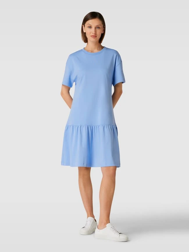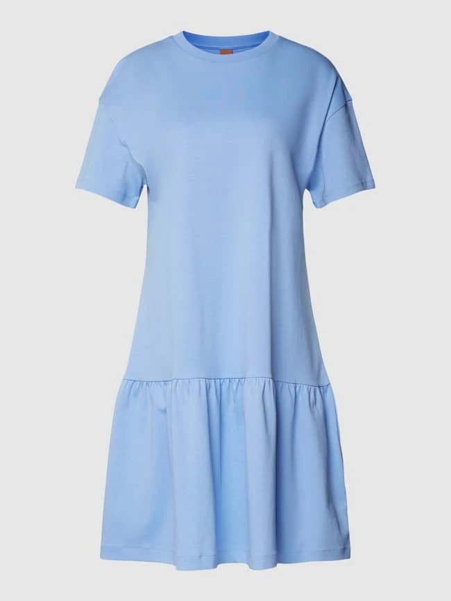 BOSS ORANGE Knielanges Kleid Mit Geripptem Rundhalsausschnitt In Royalblau