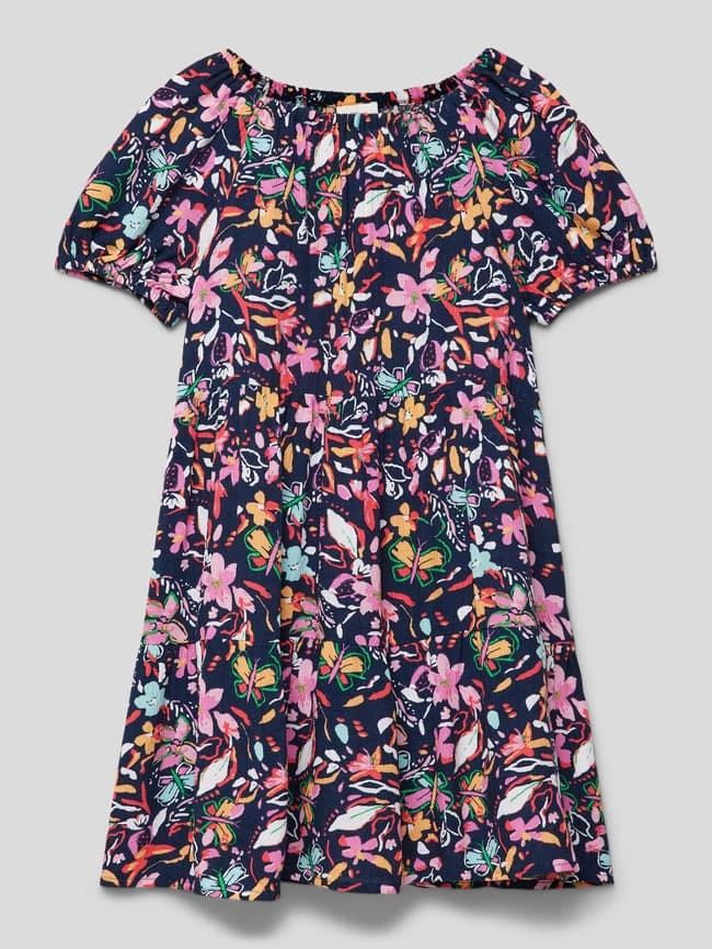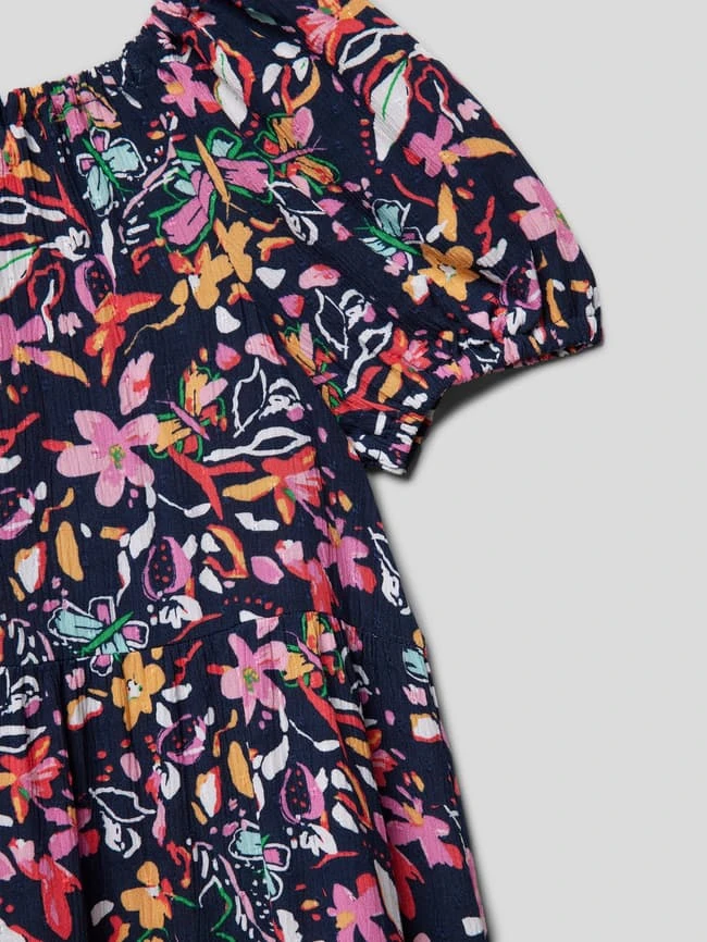 Kleid Aus Viskose Mit Floralem Allover-Muster In Marineblau