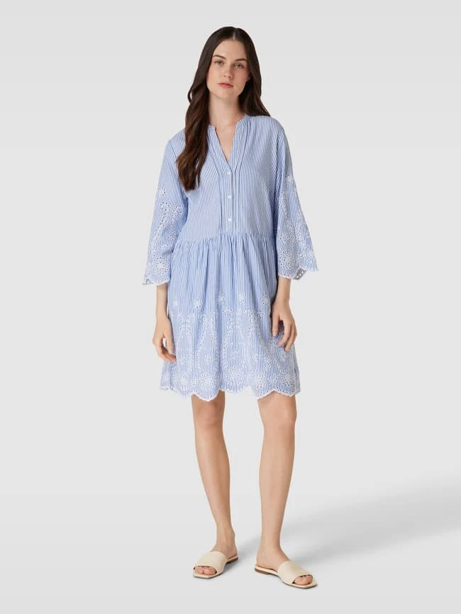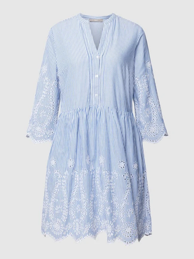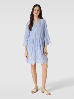 Knielanges Kleid Aus Baumwolle Mit Lochstickerei In Bleu