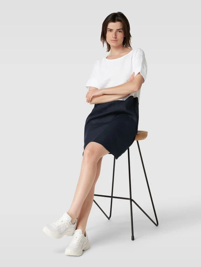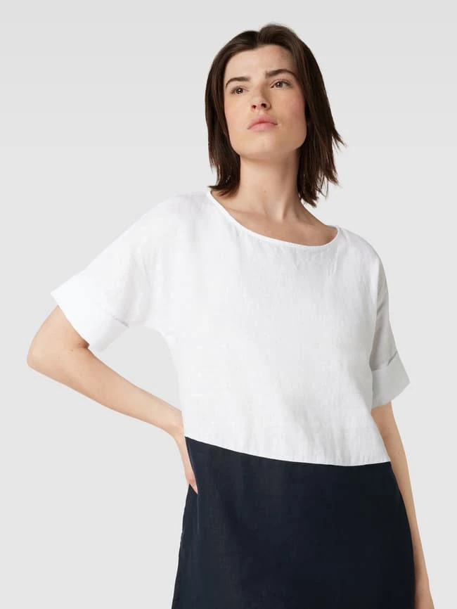 Knielanges Kleid Aus Leinen In Kontrastfarben In Dunkelblau