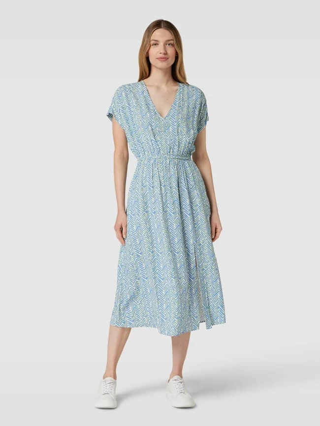 Knielanges Kleid Aus Viskose Mit Allover-Muster In Bleu
