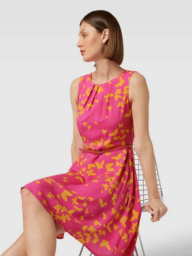 Knielanges Kleid Aus Viskose Mit Taillengürtel In Pink