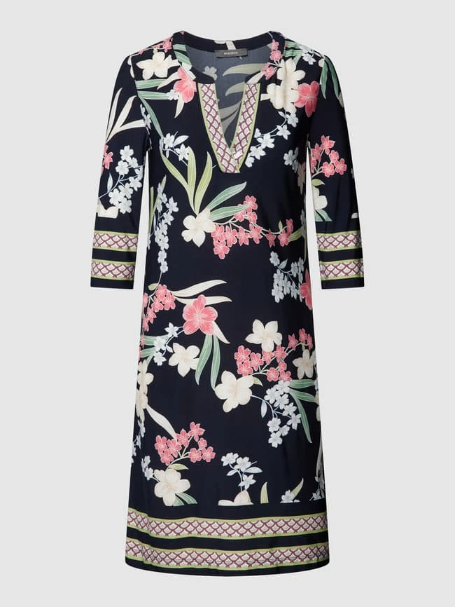 Knielanges Kleid Mit Allover-Muster In Marineblau