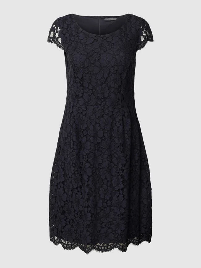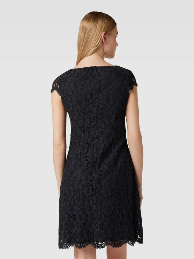Knielanges Kleid Mit Floralen Stickereien In Marineblau