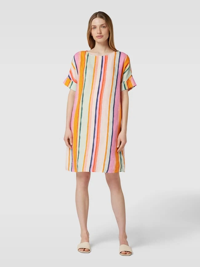 Knielanges Kleid Mit Streifenmuster In Rosa