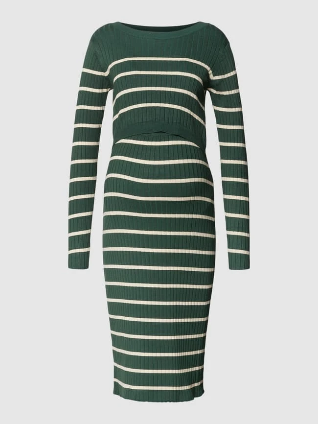 Mamalicious Knielanges Umstands-Kleid Mit Streifenmuster In Khaki