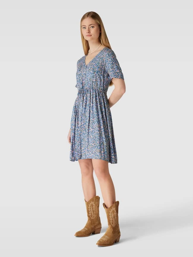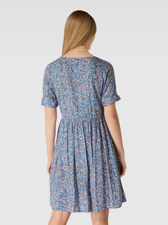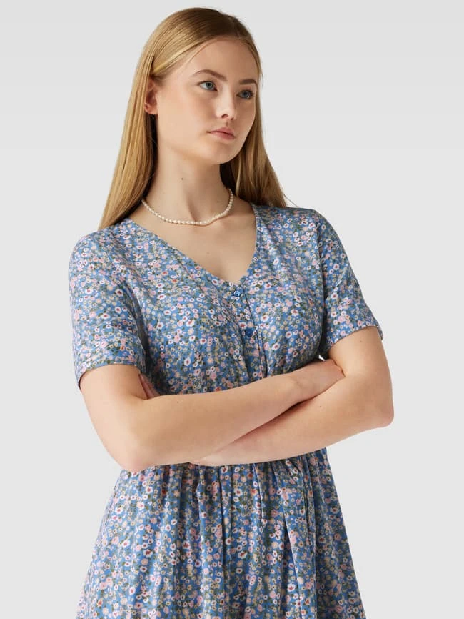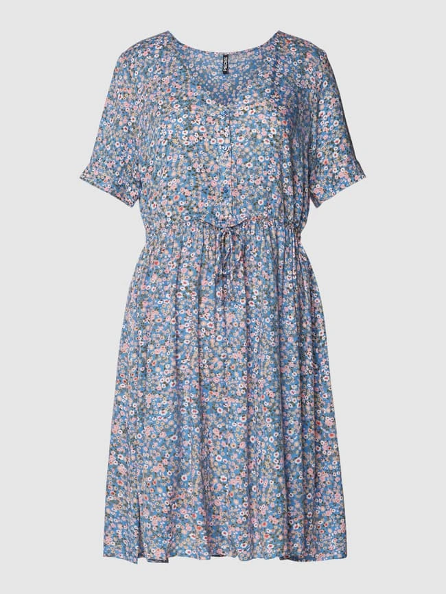 Pieces Knielanges Kleid Aus Viskose Mit Allover-Muster In Hellblau