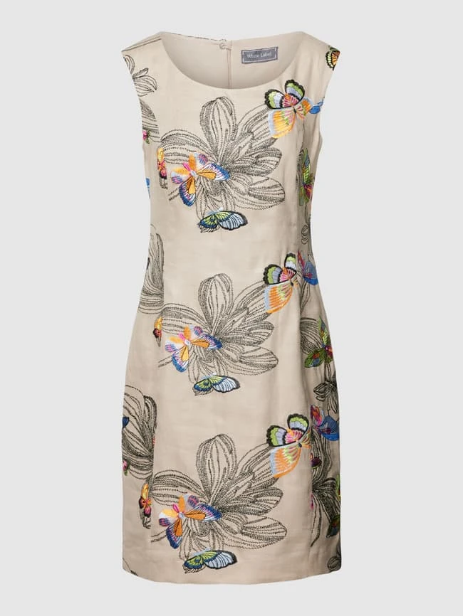 White Label Knielanges Kleid Aus Leinen Mit Motiv-Print In Sand